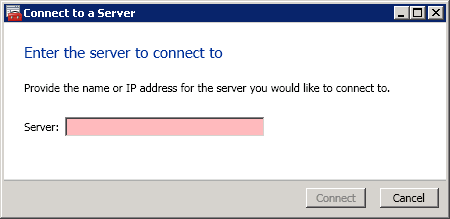 Use this dialog to connect to the server of your choice. You may enter the IP address, system NetBIOS name or the full system domain name for the server. Click Connect to select it.