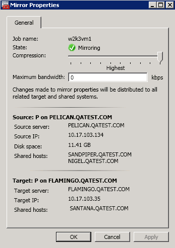 Note: Any changes made to the compression level setting are automatically propagated to all the systems listed in the Mirror Properties display.