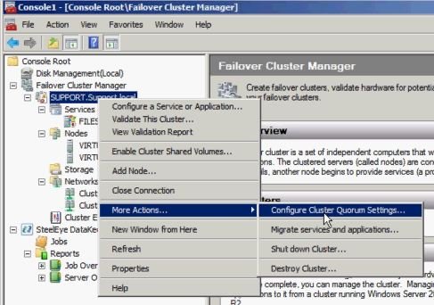 a. Right-click the cluster and select More Actions / Configure Cluster Quorum Settings…