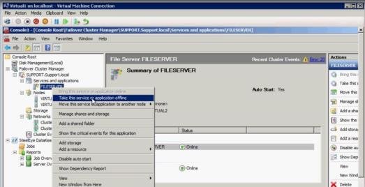 a. Offline the cluster resource group by right-clicking and selecting Take this service or application offline.