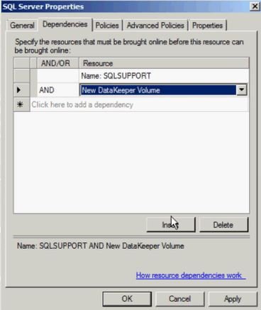 - Reestablish any/all resource dependencies to the new DataKeeper volume resource.