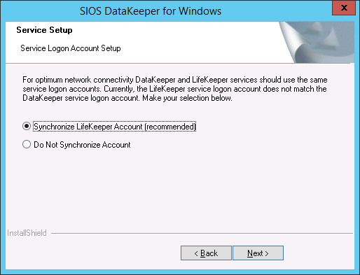 It is recommended that the LifeKeeper and DataKeeper service accounts are synchronized on each system to ensure more reliable switchovers and failovers.