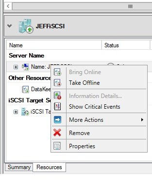 a. Click on Roles in the left pane, then click on the iSCSI Target Server resource in the top center pane.