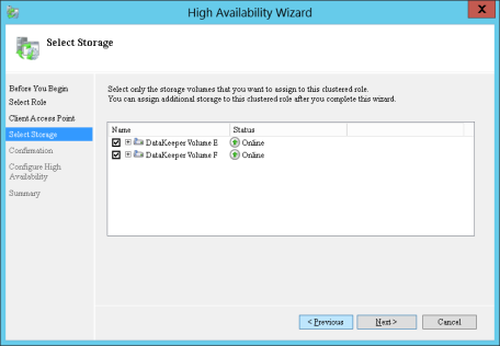 1. On the Select Storage dialog, select your DataKeeper volume(s).