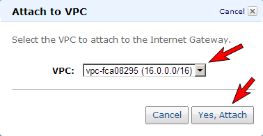- ドロップダウンリストから 仮想プライベートクラウド を選択し、 [Yes, Attach] をクリックします。