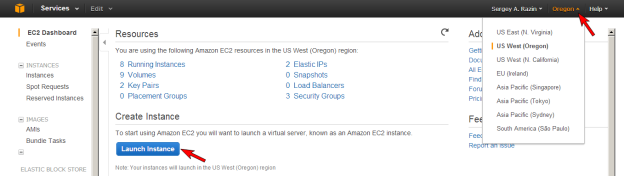 - 左のナビゲーションペインから [Instances] を選択し、 [Launch Instance] ボタンをクリックします。