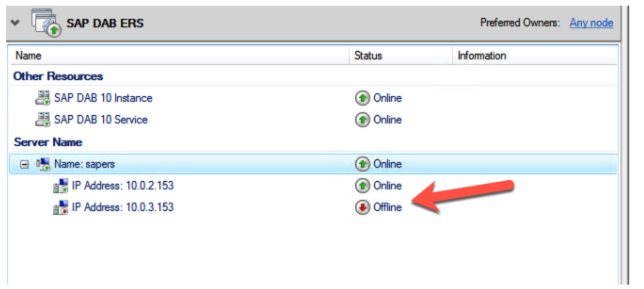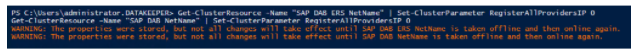 Get-ClusterResource -Name “SAP DAB ERS NetName” | Set-ClusterParameter RegisterAllProvidersIP 0