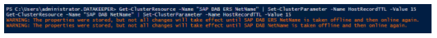 Get-ClusterResource -Name “SAP DAB ERS NetName” | Set-ClusterParameter -Name HostRecordTTL -Value 15