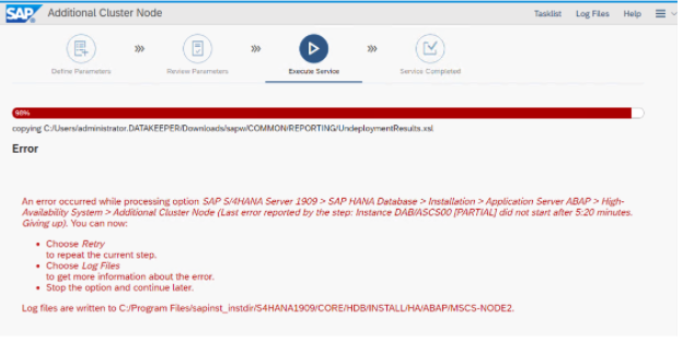 To get the installer to complete after the Error and the installer times out, you may need to move both of the cluster resources back to the primary node and click on Retry to complete the installation.