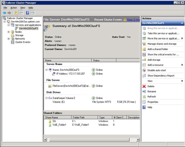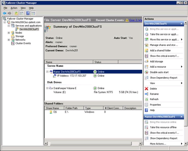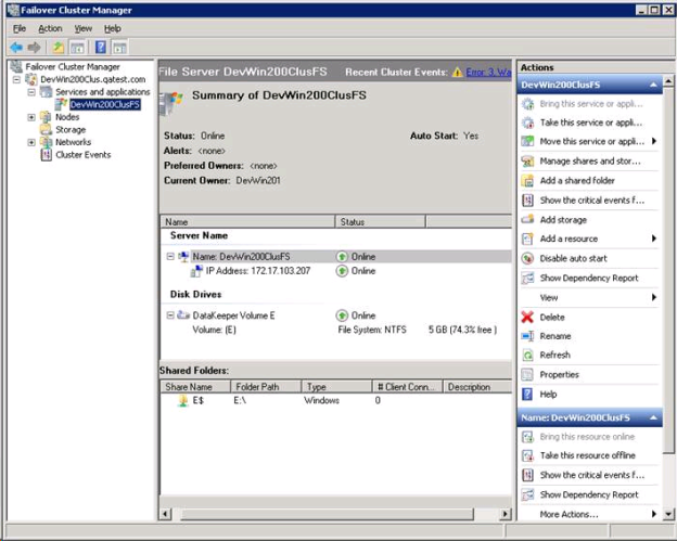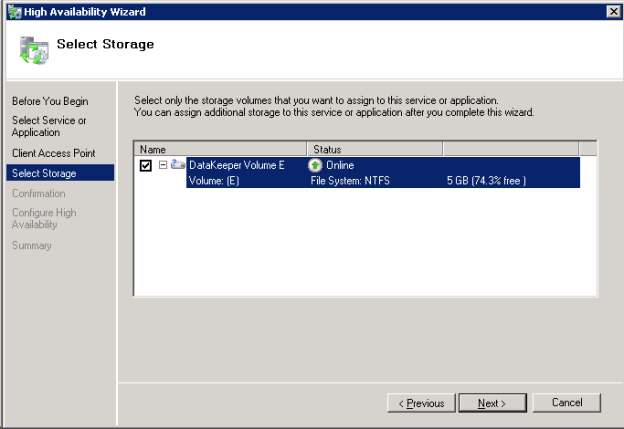 - DataKeeper ストレージを ファイルサーバ リソースに追加します。