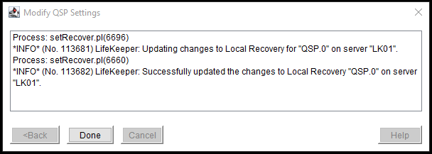 Changes to QSP resource property values must be performed on both servers. Changes to QSP resource values include changes to Monitoring State, Quick Check Interval, Startup Timeout, Shutdown Timeout, and Local Recovery. Protected services cannot be changed.