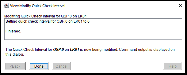 - When the Quick Check Interval change is complete, the following screen appears. Click “Done”.