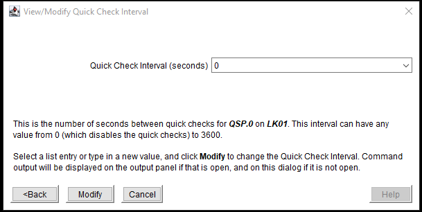 - Update the Quick Check Interval and click “Modify”. In this example, the monitoring state is set to disabled by entering 0 for the Quick Check Interval. Click “Modify”.