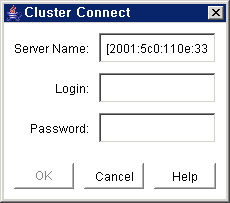 1. ダイアログボックス[サーバ名] フィールドに、クラスタ内の接続先サーバの名前を入力します。