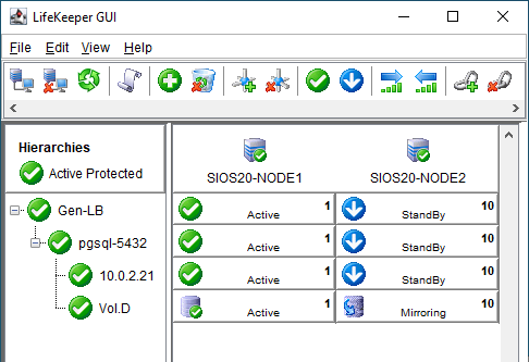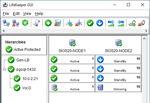 - LifeKeeper GUIを起動し、SIOS20-AD\lkadminとしてログインします。