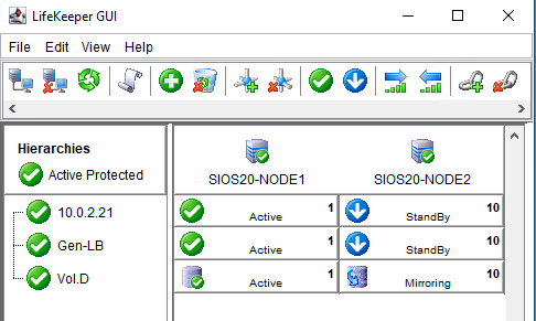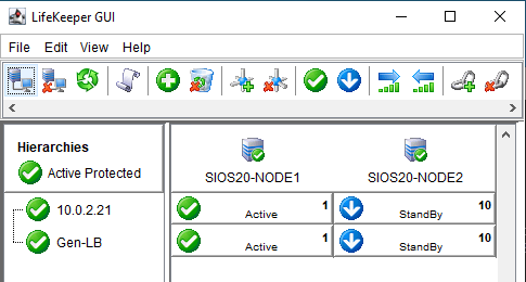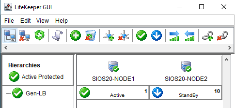 - SIOS20-NODE1 にログインし、LifeKeeper GUIを起動します。