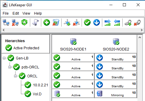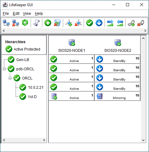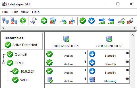 - LifeKeeper GUI を起動し、SIOS20-AD\lkadmin としてログインします。