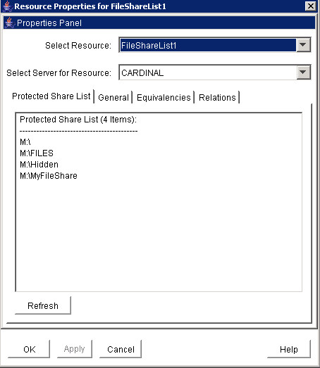 To display the list of file shares associated with a protected file share resource from the LifeKeeper GUI, right-click on the File Share resource (on the right-hand side of the LifeKeeper GUI) and select Properties, then select the Protected Share List tab.