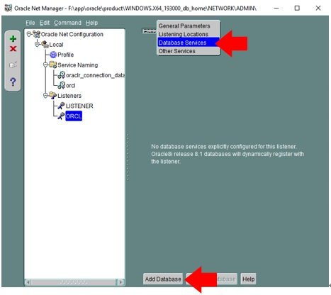 Net Manager Listeners / ORCL Global Database Name 空 Oracle Home Directory F:\app\oracle\product\WINDOWS.X64_193000_db_home SID ORCL