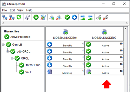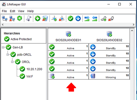 1. 稼働系(SIOS20LKNODE01)でOracleリソース階層がActiveであることを確認します。