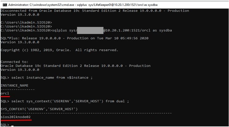 C:\> sqlplus sys/XXXXXXXX@10.20.1.200:1521/orcl as sysdba
