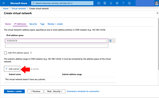 - Click +Add subnet