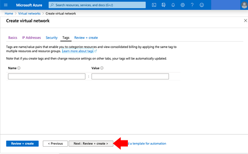 - Leave this blank and click Next: Review + create.