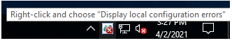 Choosing “Display local configuration errors” will display the configuration error dialog:
