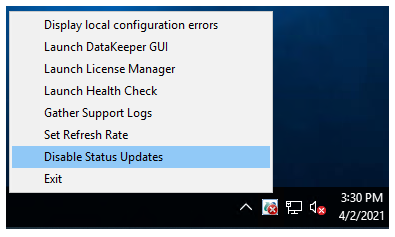 - Exit – Stops and closes the DataKeeper Notification Icon.
