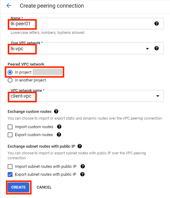 | lk-peer01 | lk-vpc | In project XXX | client-vpc |
