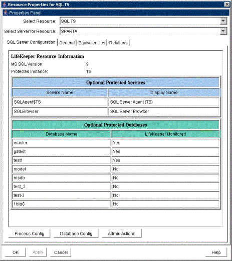 To administer a protected SQL Server resource from the LifeKeeper GUI, right-click on the SQL Server resource (on the right-hand side of the LifeKeeper GUI) and select properties, then select the SQL Server Configuration tab. Use the SQL Server Configuration page to view or change information about your SQL resource.