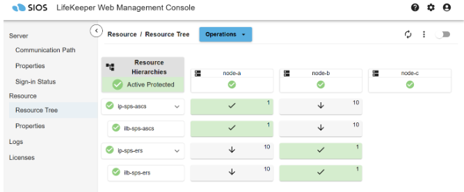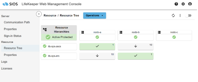 Once the dependencies have been created successfully, the LifeKeeper Web Management Console should resemble the following image.