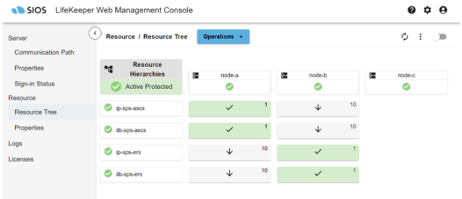 Once the IP resources have been created successfully, the LifeKeeper Web Management Console should resemble the following image.