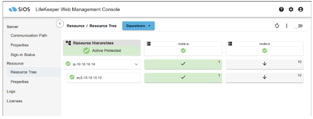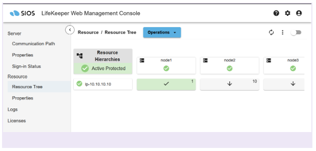 Once the IP resource has been created, the LifeKeeper User Interface should look like this.