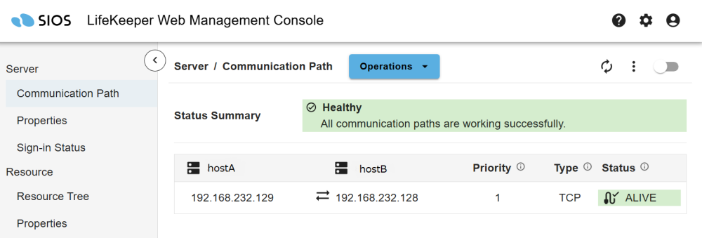 To create a cluster system with LifeKeeper, you must first set up “communication paths” between the servers that make up the HA cluster. Then, create “resources” to define what is to be protected. This document explains how to configure communication paths and create file system resources. (The LifeKeeper Web Management Console (LKWMC) is used to configure LifeKeeper. If you are using the legacy GUI, see Using the legacy GUI).