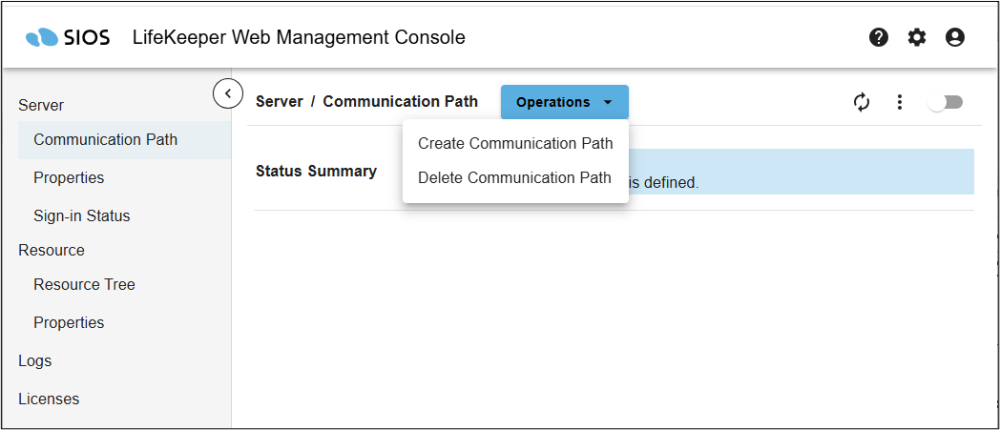 Click Communication Path in the left pane of the Management Console to open the Communication Path management screen.