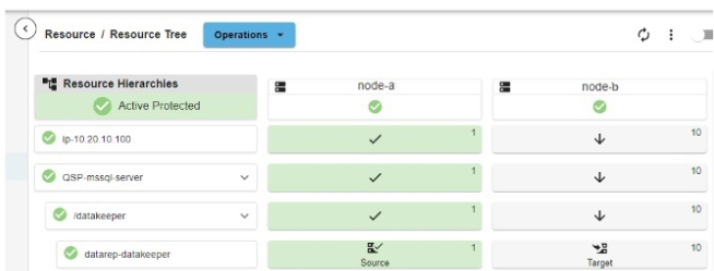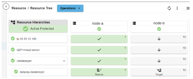 At this point, the LifeKeeper Web Management Console shows the MSSQL related resources as shown below: