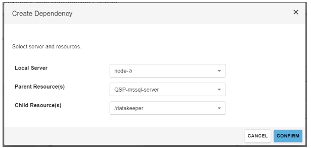 Once the dependency is defined, the LifeKeeper GUI shows the relationship as follows: