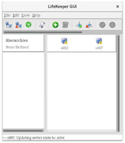 After logging in, if LifeKeeper is running and there are no issues connecting to the LifeKeeper GUI server, the following screen will appear.