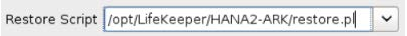 - On the next dialog enter the path to the Restore Script which will be used to start the SAP HANA database and control the replication mode. All the scripts you need for Restore, Remove, QuickCheck and Recover are located in directory /opt/LifeKeeper/HANA2-ARK. Enter the complete path in the dialog box