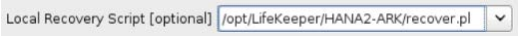 - Enter the path to the Local Recover Script for the SAP HANA database. This is the script that attempts to restore a failed component of SAP HANA database or the database itself.