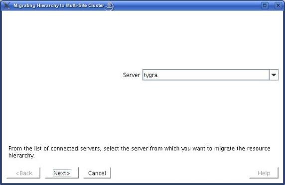 - Select the server where the hierarchy to migrate exists and is in-service. Click Next.
