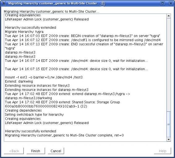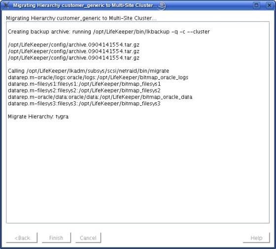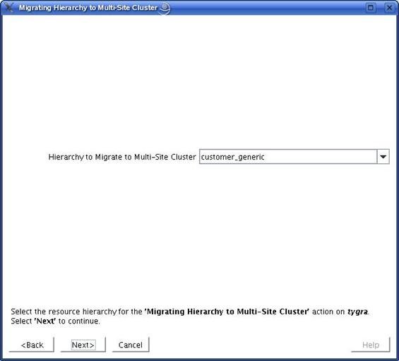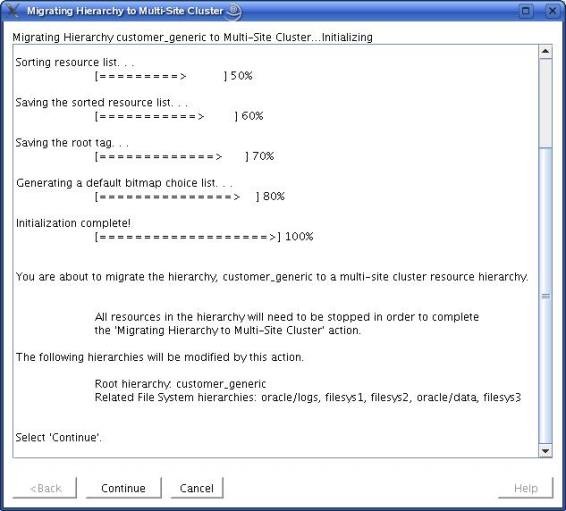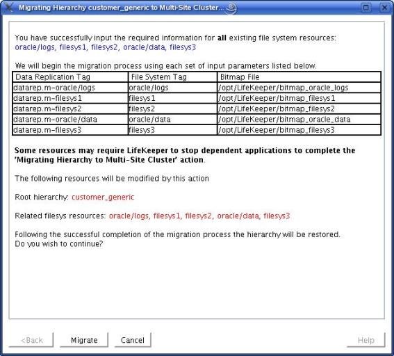 If you select a File System in the LifeKeeper GUI window and select Migrate Hierarchy to Multi-Site Cluster from the pop-up window or the Migrate icon in the Properties Panel Migrate icon, the following initialization screen displays.
