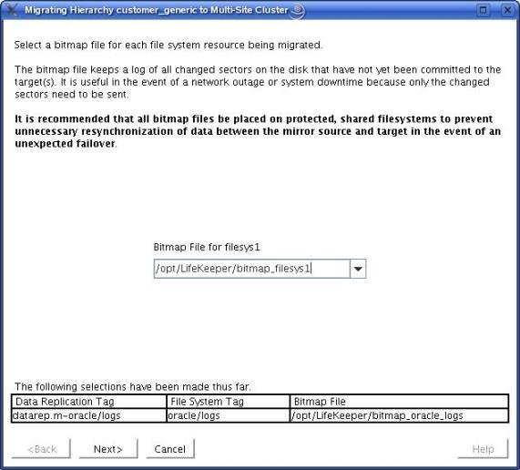 - Select a bitmap file for the file system you are migrating. Select Next.