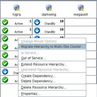 - Select the file system resource and right-click the mouse to display the Migrate Hierarchy to Multi-Site Cluster menu option.