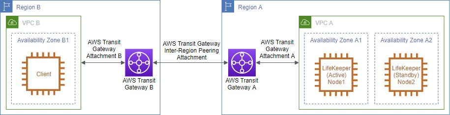 | VPC B CIDRブロック | AWS Transit Gateway Inter-Region Peering Attachment |