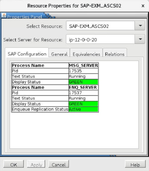 - SAPシステムを再起動します。ASCSインスタンスが再起動すると、enserver(ENSAv1)プロセスではなくenq_server(ENSAv2)プロセスが使用されます。これは、LifeKeeperでASCSリソースを右クリックし、 [Properties…] を選択することで確認できます。