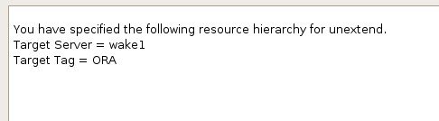 - An information box appears confirming the target server and the Oracle resource hierarchy you have chosen to unextend.