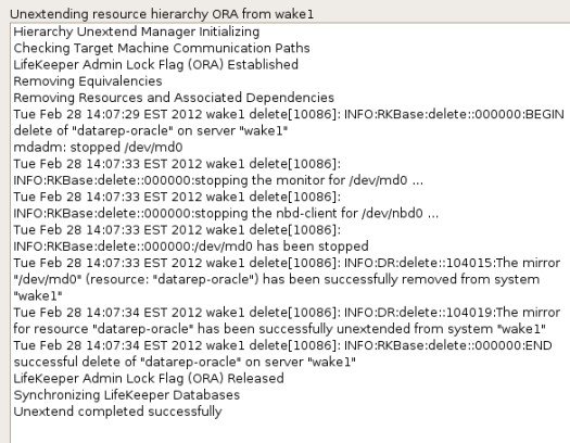 - Another information box appears confirming that the Oracle resource was unextended successfully.