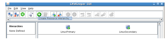 - From the LifeKeeper GUI toolbar, click Create Resource Hierarchy.